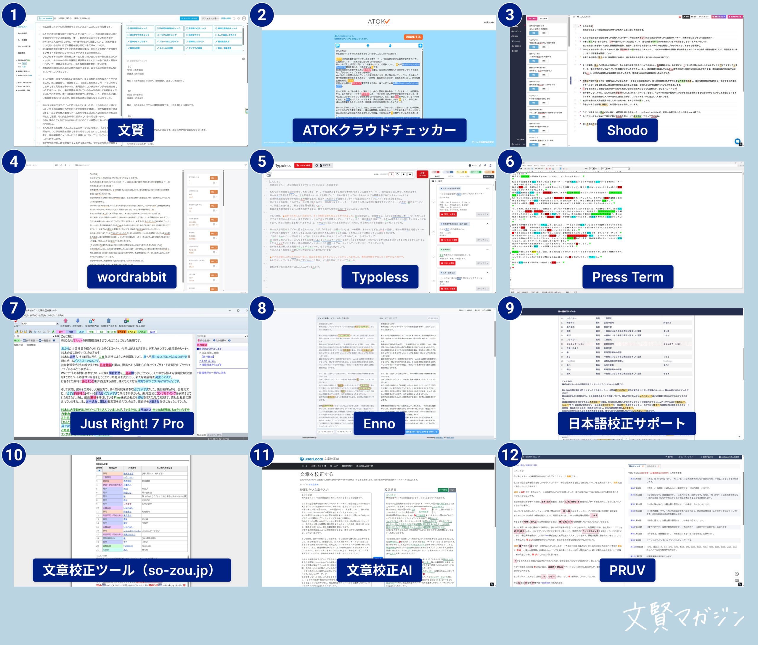 ここまで、厳選した12の校正ツールをご紹介しました。